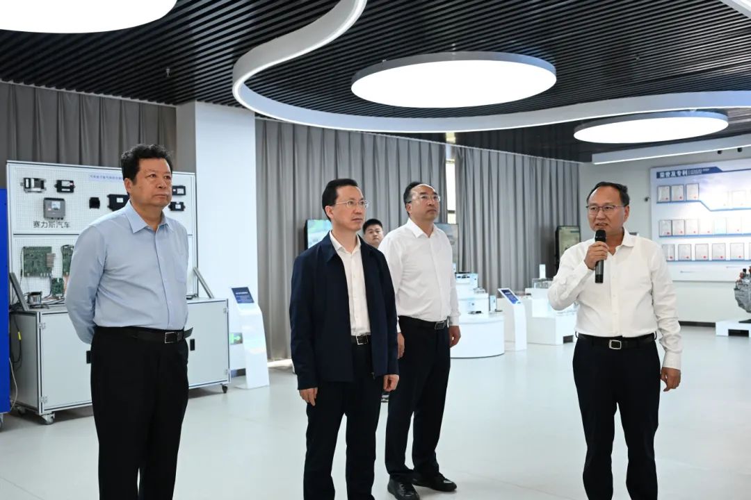 在同济大学南昌智能新能源汽车研究院(以下简称“研究院”),调研人员听取了研究院建设情况介绍,并参观了相关实验室及科技转化成果。研究院由同济大学与南昌市人民政府共建,聚焦新能源动力、智能网联、新材料等前沿领域,着力打造人才引培基地、研发创新基地、产业孵化基地和检验认证基地。
